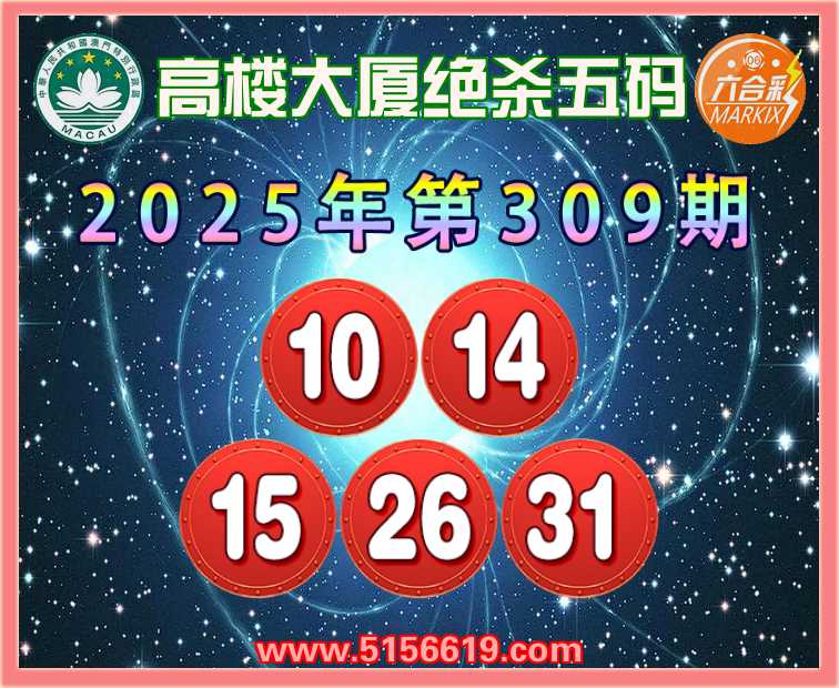 309期:『高楼大厦』 🍀绝杀五码🍀【10.14.15.26.31】开:00准