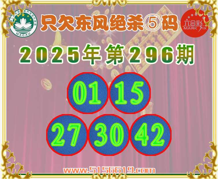 296期:〖只欠东风〗 ✌️绝杀⑤码✌️【01.15.27.30.42】开:猴22准上榜高手