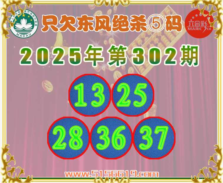 302期:〖只欠东风〗 ✌️绝杀⑤码✌️【13.25.28.36.37】开:猴22准上榜高手