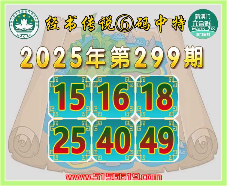 299期: ☘️『经书传说』 ☘️⑥码中特☘️【15.16.18.25.40.49】开:49准上榜高手