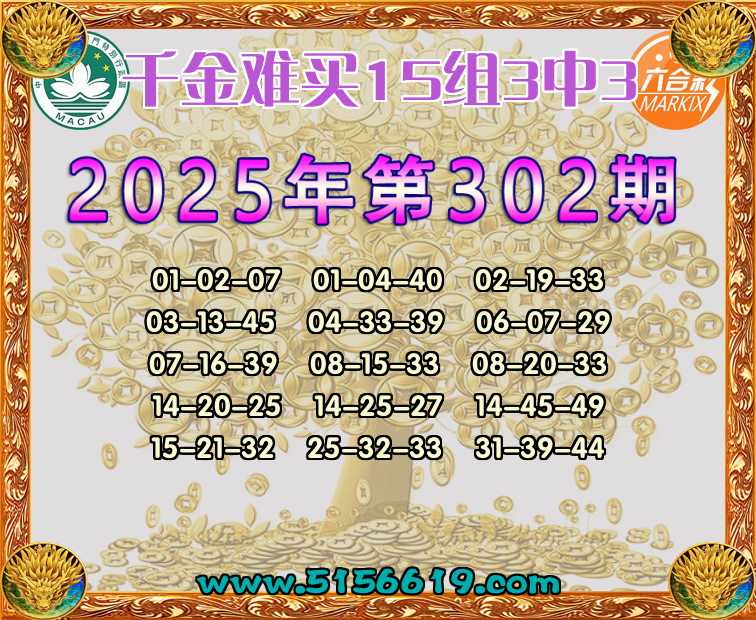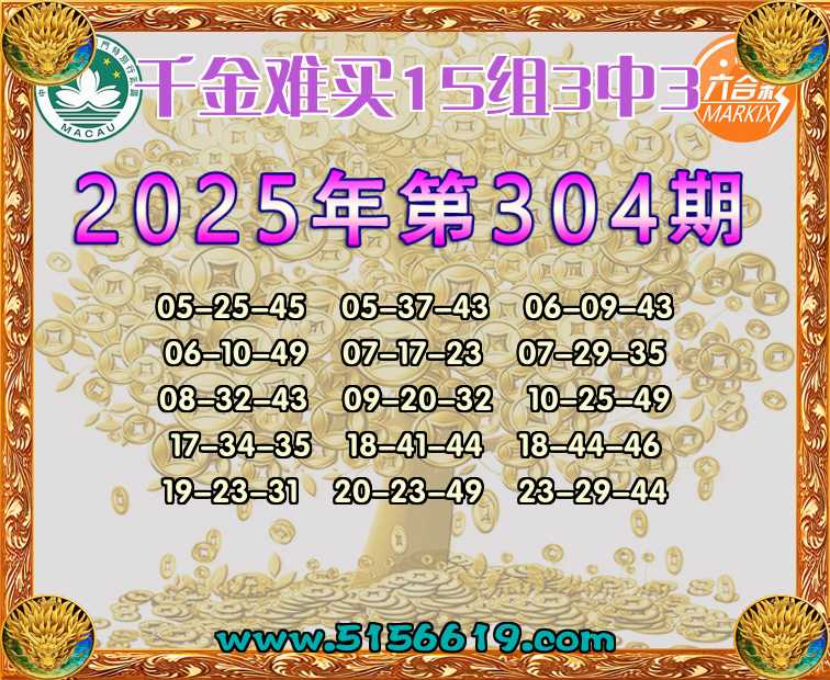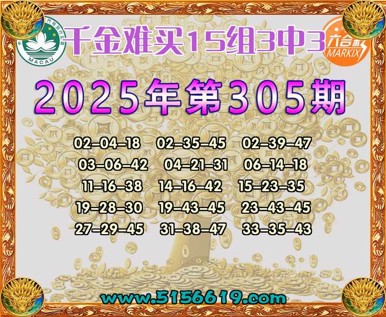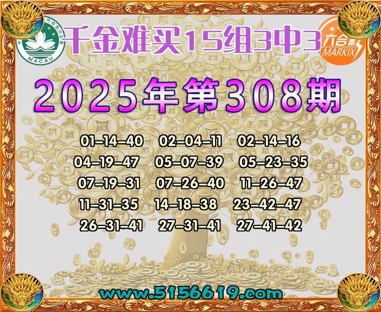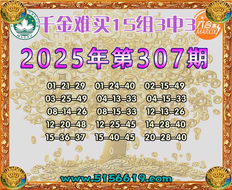主题: 309期:千金难买【15组3中3】〓 手到擒来