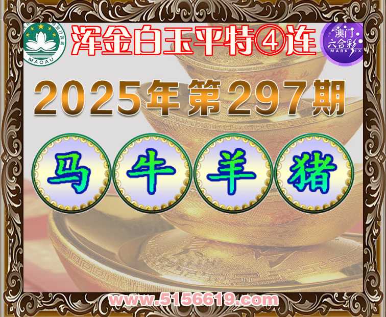 297期:『浑金白玉』 🍙平特④连🍙【马牛羊猪】开:马24,牛41,羊11,猪43准上榜高手