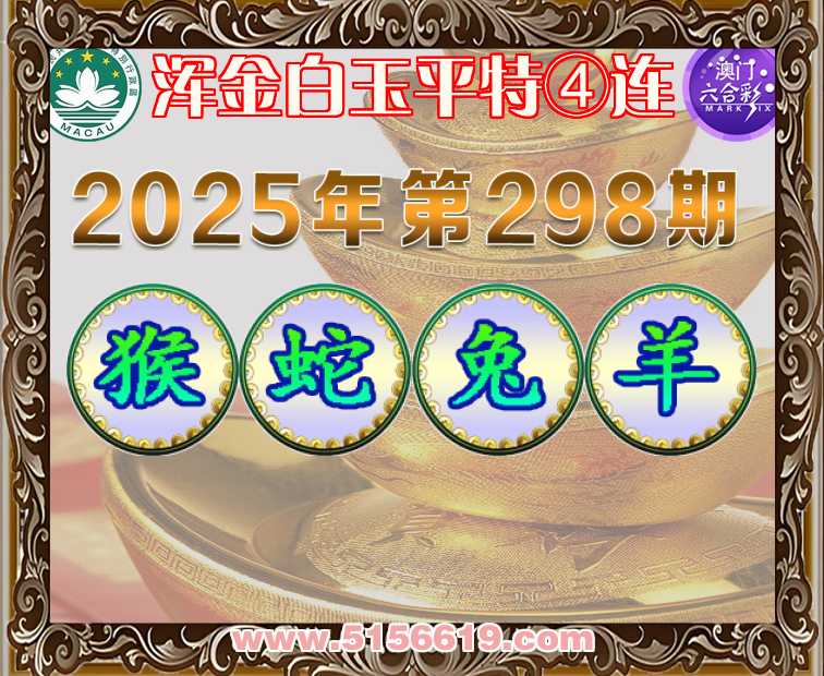 298期:『浑金白玉』 🍙平特④连🍙【猴蛇兔羊】开:猴22,蛇49,兔39,羊23准上榜高手