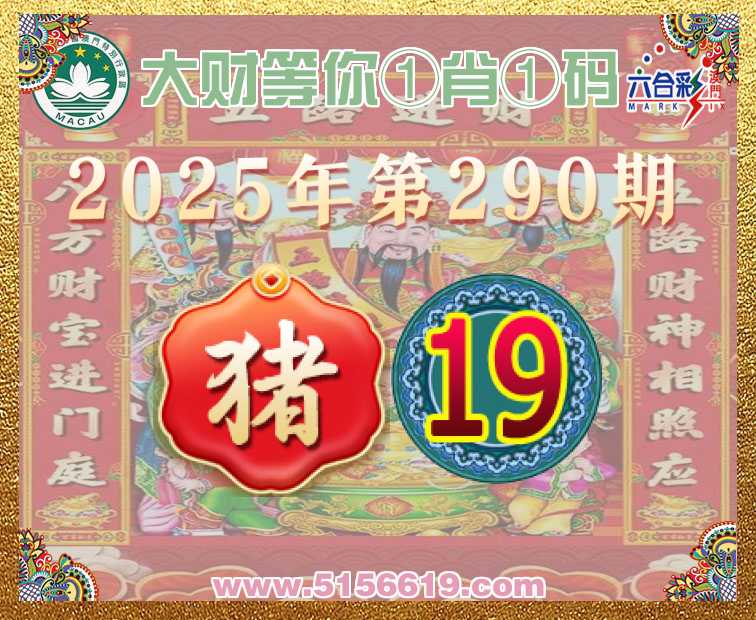 290期:【大财等你】 🧏‍♀️①肖①码🧏‍♀️【】【19】开:猪19