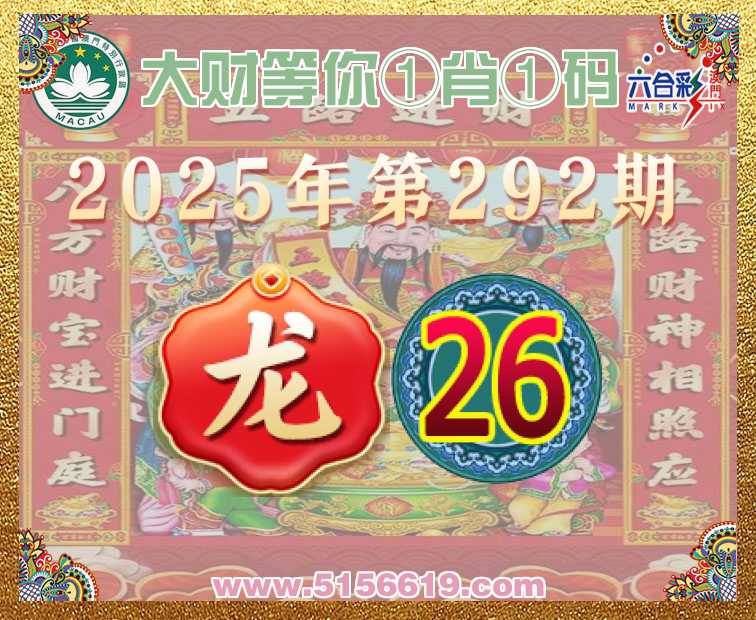 292期:【大财等你】 🧏‍♀️①肖①码🧏‍♀️【】【26】开:龙02