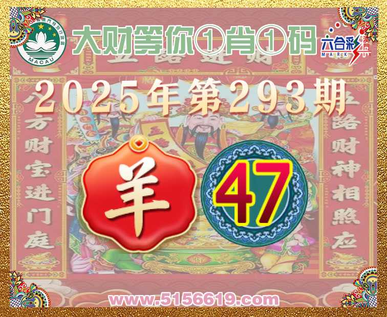 293期:【大财等你】 🧏‍♀️①肖①码🧏‍♀️【】【47】开:羊47