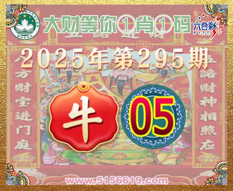 295期:【大财等你】 🧏‍♀️①肖①码🧏‍♀️【】【05】开:牛05
