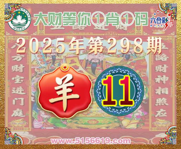 298期:【大财等你】 🧏‍♀️①肖①码🧏‍♀️【】【11】开:羊23准上榜高手