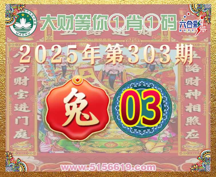 303期:【大财等你】 🧏‍♀️①肖①码🧏‍♀️【】【03】开:兔15准上榜高手