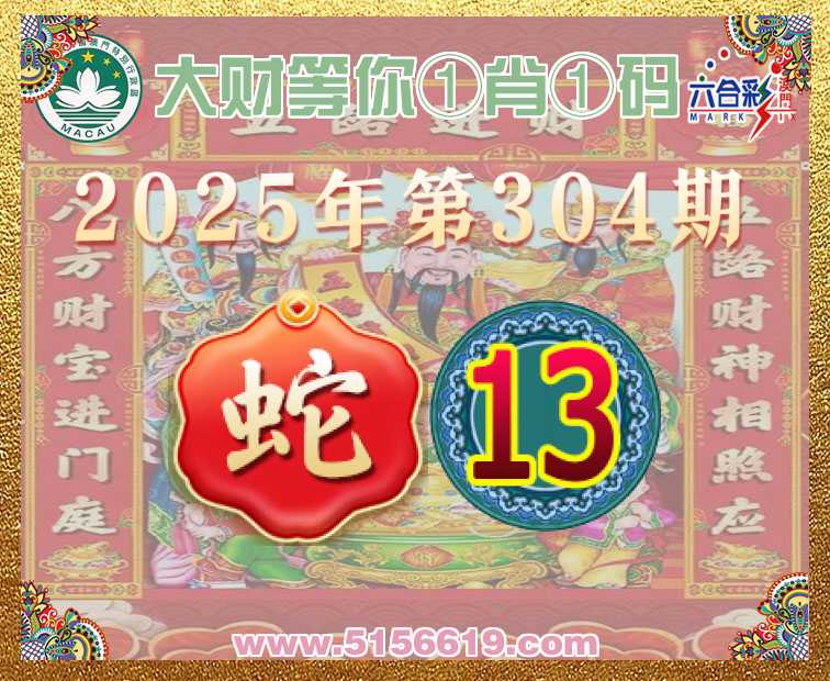 304期:【大财等你】 🧏‍♀️①肖①码🧏‍♀️【蛇】【13】开:马48