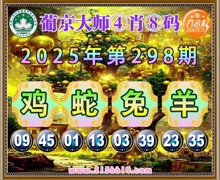 298期:【葡京大师】 ☺️④肖⑧码☺️【鸡蛇兔】开:羊23