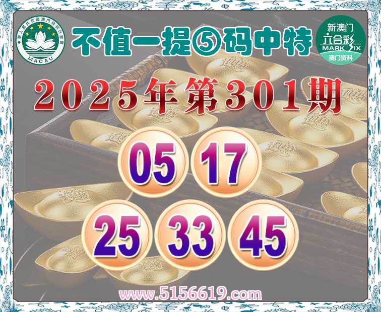 301期: 🏃‍♀️『不值一提』 🏃‍♀️⑤码中特🏃‍♀️【05.17.25.33.45】开:05