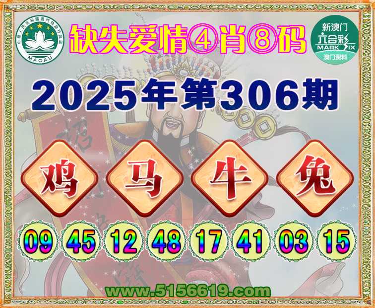 306期:〖缺失爱情〗 🚣④肖⑧码🚣【鸡马兔】开:牛17准上榜高手