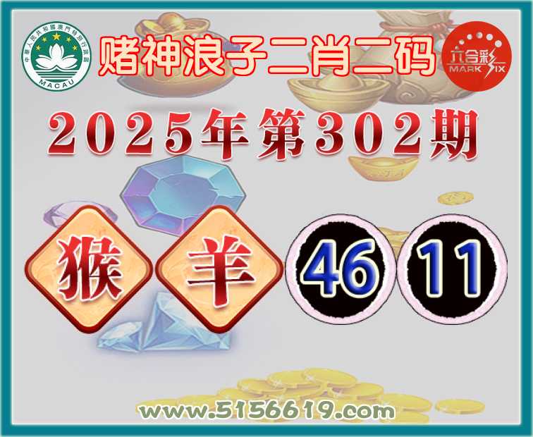 302期:『赌神浪子』 🥓二肖二码🥓【羊】【46.11】开:猴22