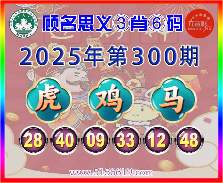 300期:【顾名思义】 ♠️③肖⑥码♠️【鸡马】开:虎40