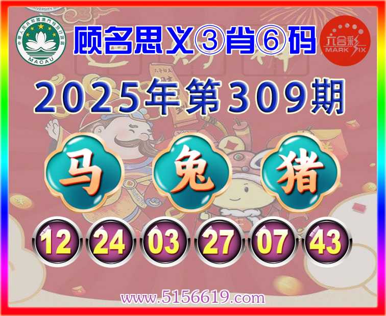 309期:【顾名思义】 ♠️③肖⑥码♠️【马兔猪】开:00准
